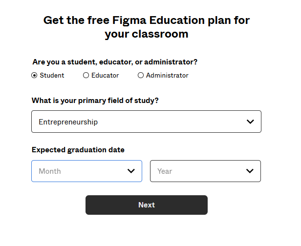 - K-12 교육자 인증은 이 링크를 사용하라고 한다. https://www.figma.com/education/k-12/