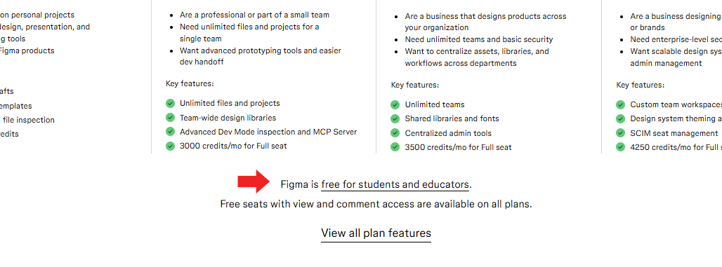 페이지 맨 아래로 내리면 Figma is free for students and educators 이 부분을 클릭하면 된다.(숨겨놓음;;)
